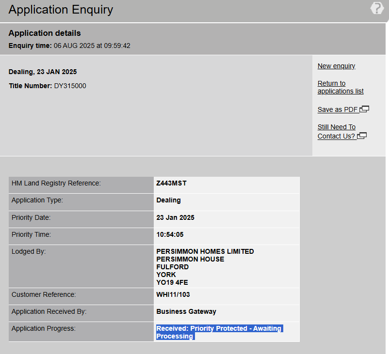 Hi Adam  I hope it's OK to jump onto this as I'm wondering if this may be the case for my current situation. So far it is preventing me from remortgaging even though the title deed is in my name.<br> <br> I bought my house in Dec2024 and my mortgage fixed term ends at the end of Sept. I have everything in place for a new mortgage. My conveyancer for the remortgage alerted me to the LR not having updated the title, and so I called them, expedited the case, got an official copy of the register title sent to me.<br> <br> Forwarded to conveyancer, who said there is an outstanding application on the property by Persimmon who I bought the house off. They owned it for about 2 weeks as the previous owners part exchanged with them and moved into one of their new builds, and I bought this place.<br> <br> Now my understanding is that ordinarily if Persimmon had their application in first my application could not be expedited without expediting theirs. But from time and date stamps it seems that they made the application on 23rd Jan, which was AFTER my solicitor made my application, hence I actually come first in the priority order.<br> <br> However now, I have this outstanding application on the LR, meaning I cannot finalise my remortgage, and it is reliant on Persimmon's conveyancer to either expedite or remove. They don't appear to be being massively helpful and they clearly do not have the same sense of urgency as I do, namely risking losing my remortgage offer and rolling onto my current lender's SVR which would cost me a huge amount more.<br> <br> I am at a loss as to how this can be allowed to happen and I really don't know how best to approach it. Calls to yourselves at LR have simply told me it's up to Persimmon to sort out but this seems outrageous, as essentially it means at any time someone could interfere with anyone's ability to refinance their house.<br> <br> You seem to suggest to John above that this application from them will no longer be valid and disappear, but this is not the information I have received and I would massively appreciate clarity on this because I stand to end up losing a significant amount of money if I have to roll onto the SVR of my current lender, through no fault of my own.<br> <br> Vbw<br> <br> Emma