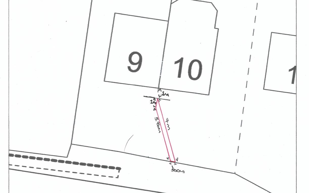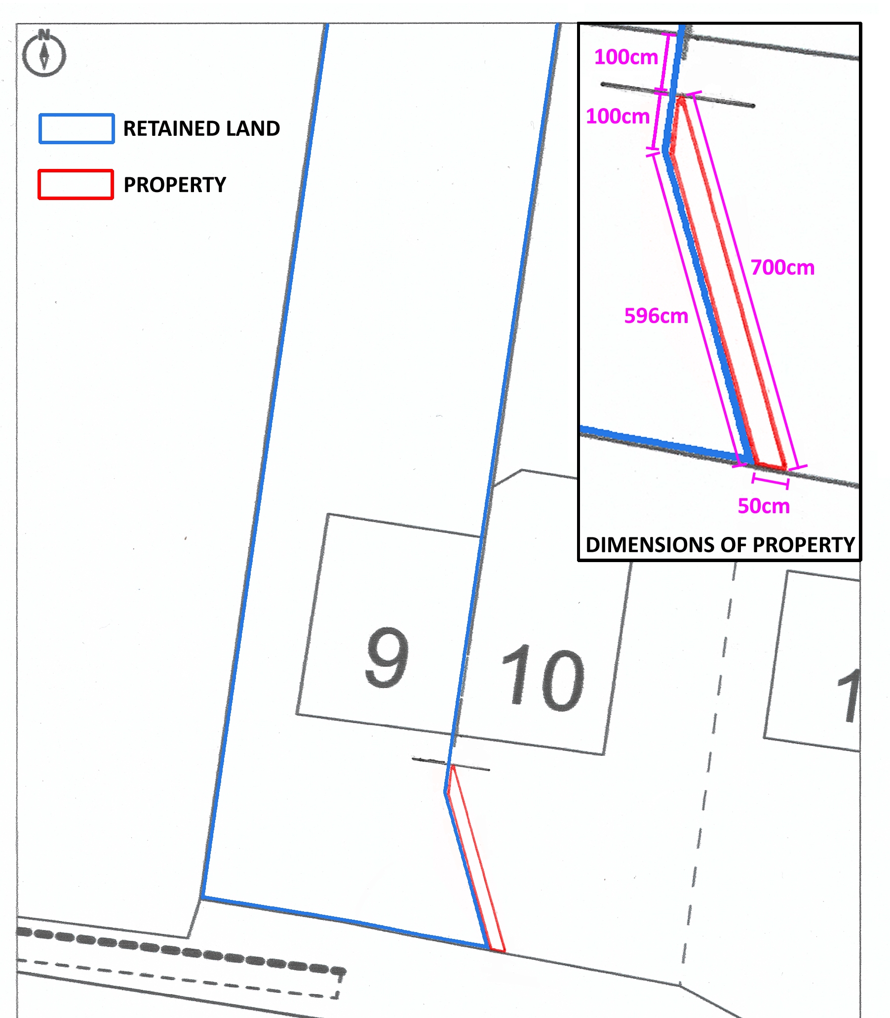 As can be seen from improvedplan.jpg, it's just the old “too vague” plan with some measurements crudely biro-ed in. I'd be interested to know whether this plan would pass muster if sent to the Land Registry along with a TP1 that contains no text describing the position or size of the property to be transferred.
