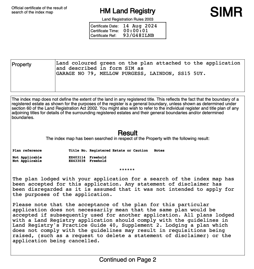 Title ID for the other property our buyers solicitor claimed the garage is connected to is EX403114
